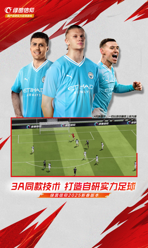 《绿茵信仰》是由网易自主研发的首款真实足球竞技游戏,拥有fifpro、中国国家男子足球队、曼城等球队的正版授权,搭载messiah次世代引擎,致力于为中国球迷提供最极致的拟真操控足球游戏体验。完整应用3a同款motion matching技术,带你亲临真实足球世界。丰富创新的玩法,独特的球员养成系统,让玩家沉浸于绿茵赛场的多样魅力。