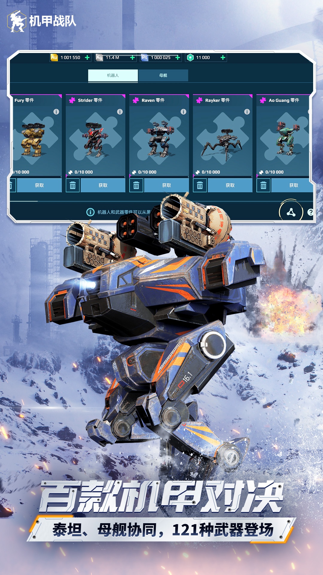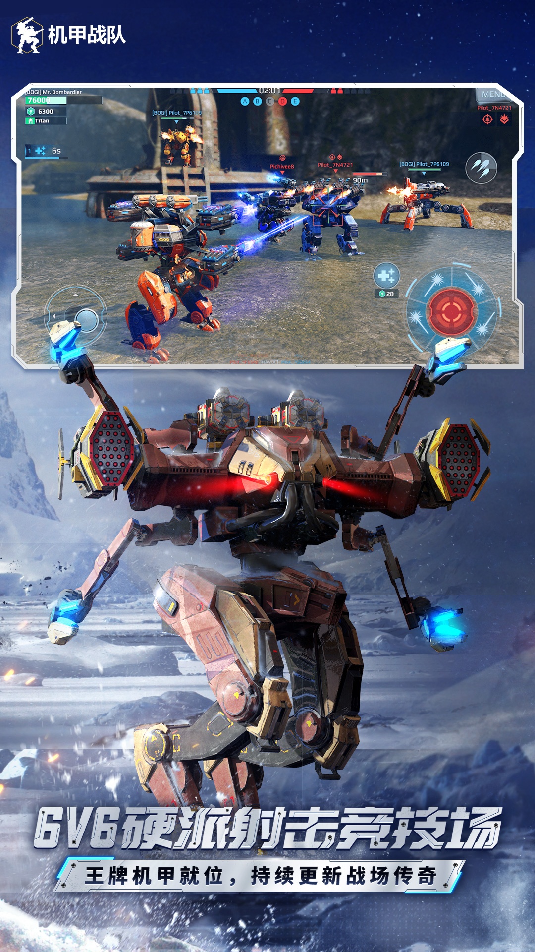 机甲战队是一款6v6多人联机射击对战手游。玩家作为指挥官,通过控制机器人夺取灯塔、摧毁敌方机器人来扩张领土,在对战中获胜。游戏中含有多达70种不同移速和生命值的机器人,以及海量武器可供玩家自由选择搭配,高自由度打造对战武器。为应对奇袭、错综复杂的战术机动和敌人的诡计做好准备。毁灭!占领!升级!变强——证明自己是机甲宇宙中最优秀的机甲指挥官!