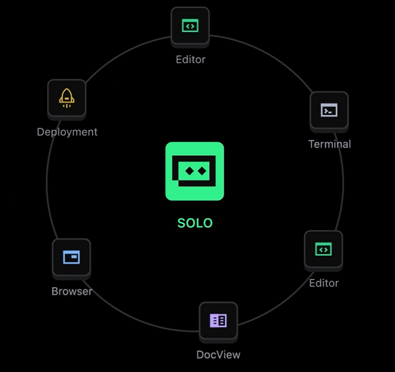●solo模式:自然语言对话驱动全流程开发,ai自动调度文档/ide/终端/浏览器等工具,执行结果自动聚合至「拓展视图」,无需跳转界面。