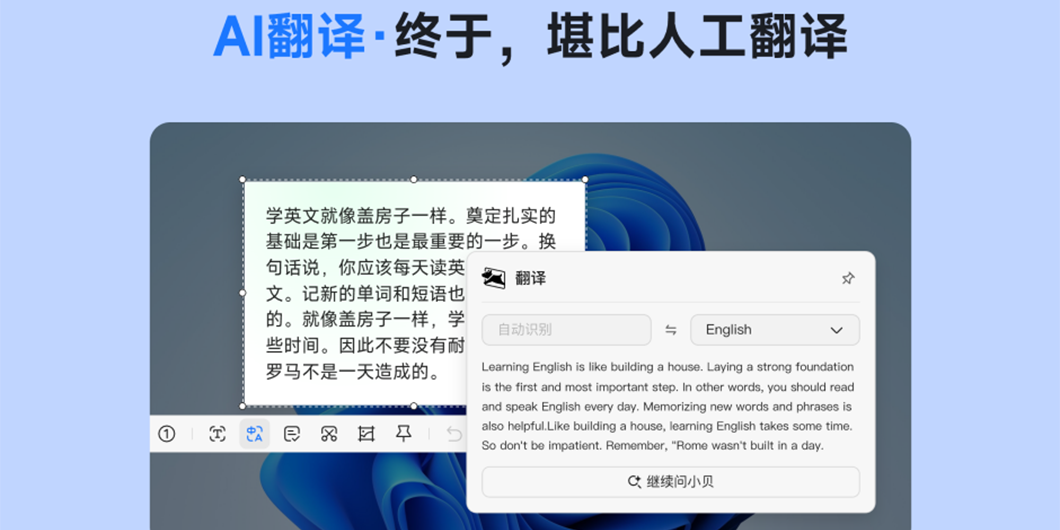 截图ai翻译,接入deepseek大模型,翻译更快、更方便,堪比人工翻译!支持10多种语言。