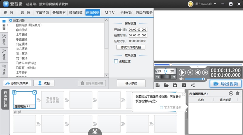 6、多达上百种专业的风格滤镜及调色效果,让影片妙趣横生且充满格调