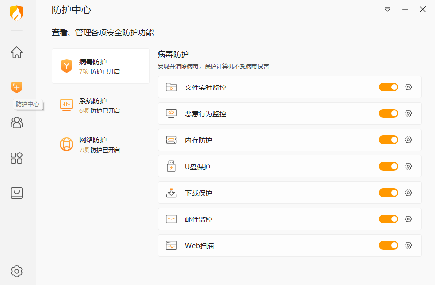 火绒多层次主动防御系统,病毒层、系统层、网络层纵横交错,编织安全防护网。