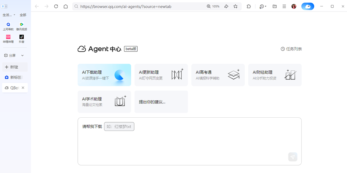 qq浏览器全新上线al agent,当用户发出指令,ai即刻为你开启全流程自动化服务。