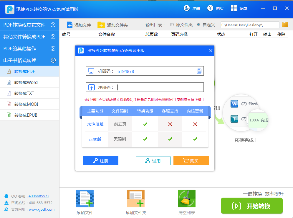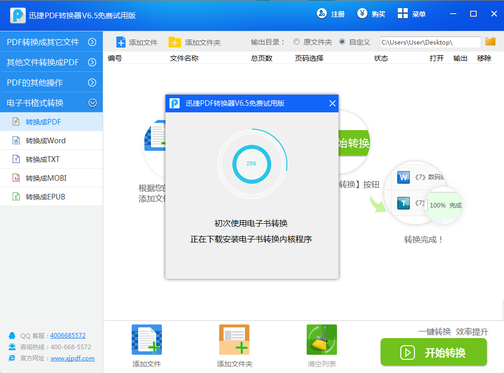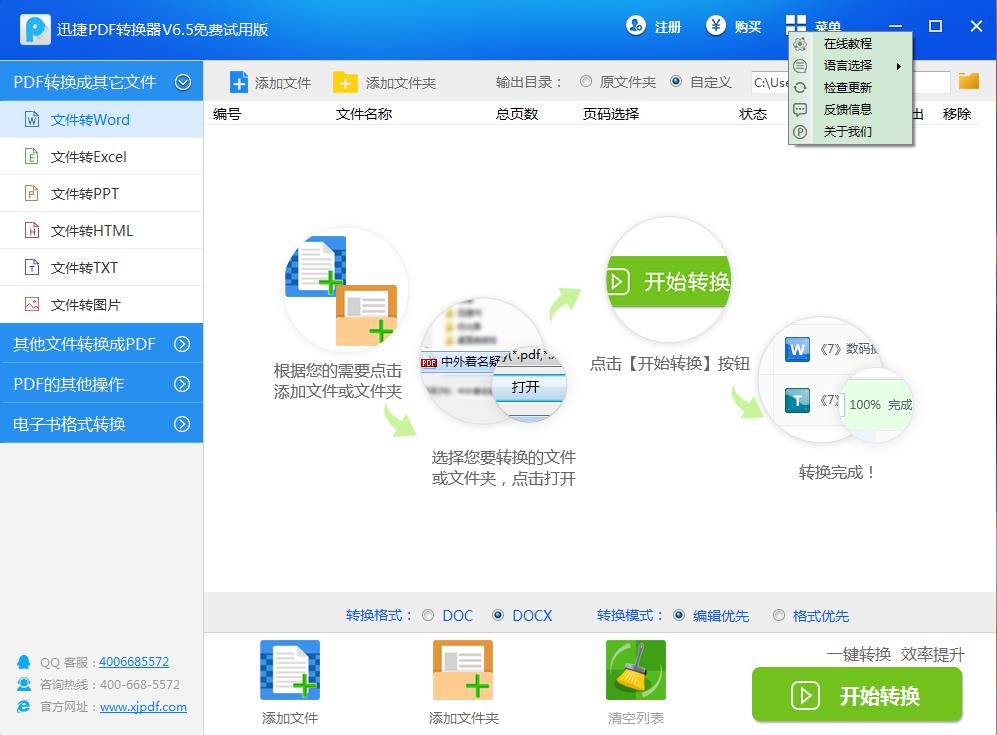 迅捷pdf转换器官方版是一款功能强大、界面简洁、并且操作也很简单的pdf转word软件。用户只需把pdf文件拖拽到软件界面中单击"转换"按钮即可完成转换。该软件还具备批量pdf文件转换功能,pdf文件批量转换技术,可以将多个pdf文件进行批量一键转换,轻松方便快捷。