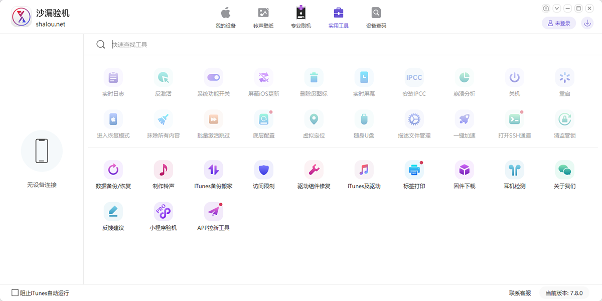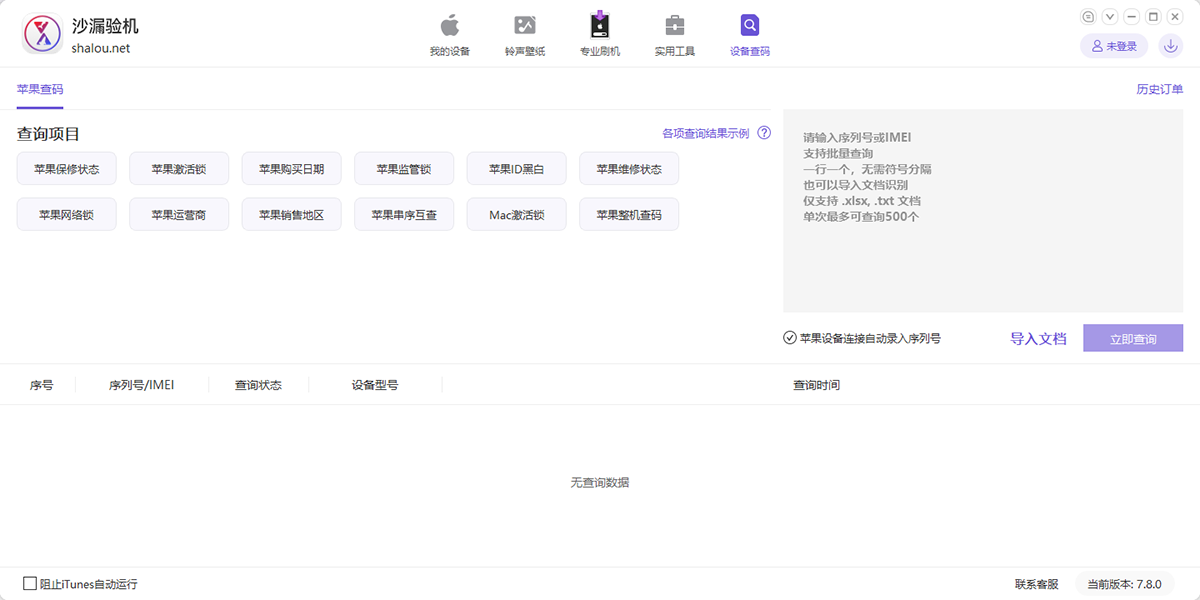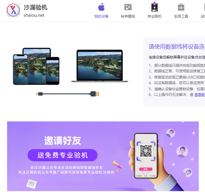 沙漏验机沙漏验机(鲨漏验机)是一款专业的苹果验机助手、苹果刷机助手,同时配有鲨漏验机pc端、鲨漏验机mac版;专为苹果用户提供专业精准的验机服务,以及功能全面的设备管理,验机我们是专业的。鲨漏验机,专注于苹果移动设备验机与管理,兼容设备有:iphone、ipad、ipod touch。