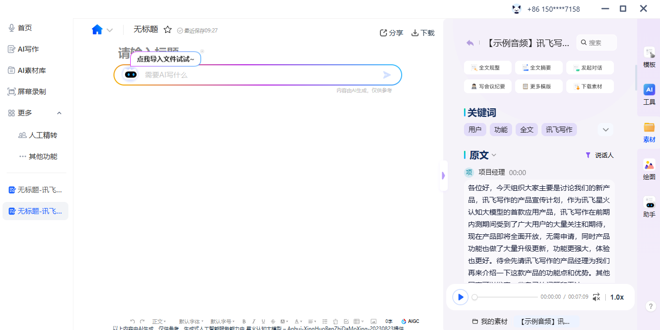 6、编辑优化:依据语义自动优化语气词,智能区分音频角色及段落。