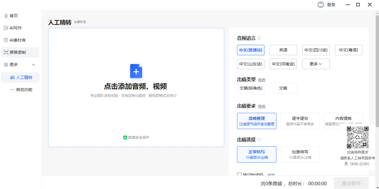 5、高效出稿:机器转写1小时录音5-10分钟出稿,提升工作效率。