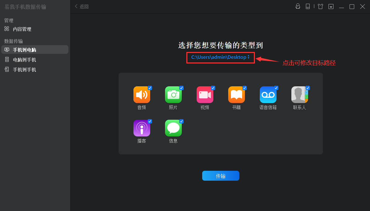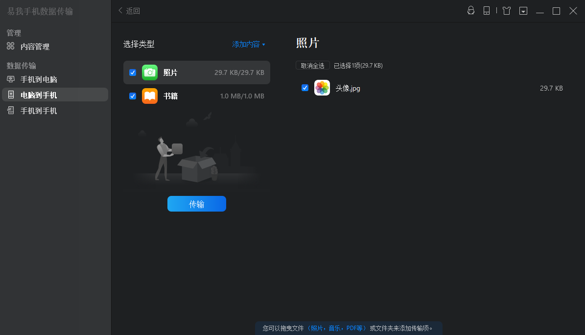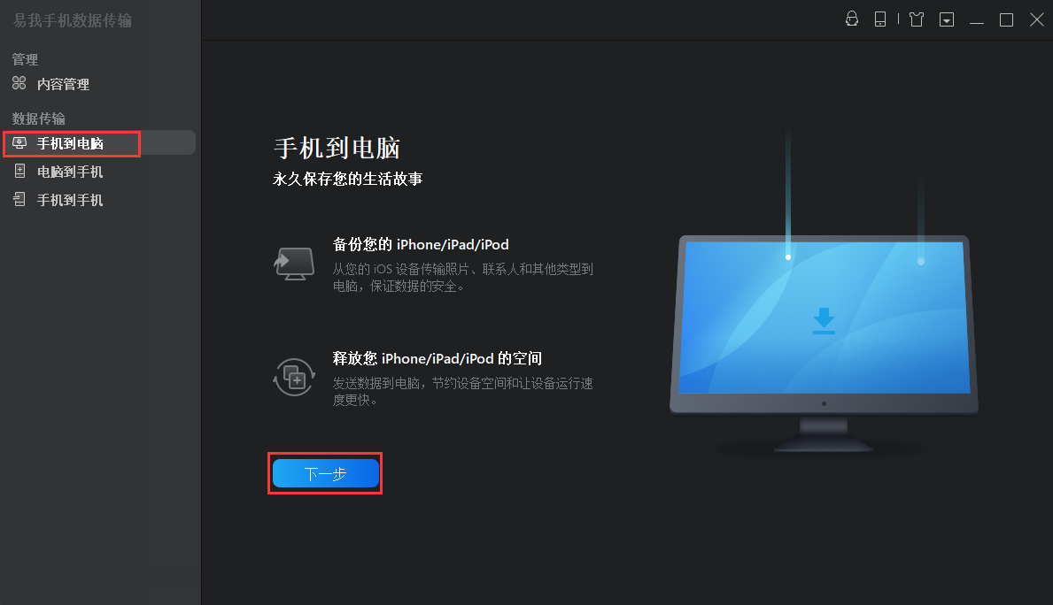 作为国内一款iphone数据传输软件,易我手机数据传输软件提供的功能包括iphone/ipad备份、在 ios设备间共享文件或将电脑上的文件同步到手机上。这款软件可以协助用户将照片、通讯录、音乐、电子书、笔记在ios设备之间或者设备与电脑之间传输。