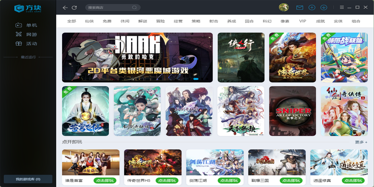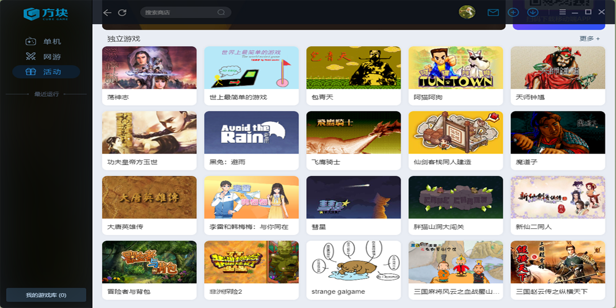 方块游戏平台官方版是方块游戏的自有单机游戏发行平台,为广大的玩家提供经典武侠游戏下载,其中国产非常经典的仙剑奇侠传系列都可以在这里玩到。方块游戏平台是一个独特的中文pc单机游戏平台,提供国内外海量优秀单机作品等你来玩!