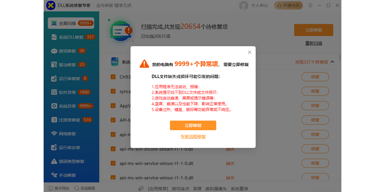 软件能够快速且精准的修复被病毒破坏、误删或损害的dll文件