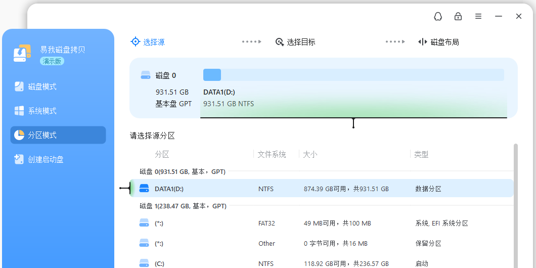 支持mbr和gpt硬盘,基本和动态硬盘。易我磁盘拷贝工具最多可支持16tb硬盘,最多可支持32个磁盘。