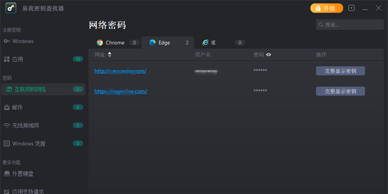 易我密钥查找器会显示存储在以下网络浏览器中的账号和密码:internet explorer、mozilla firefox、google chrome和edge等。