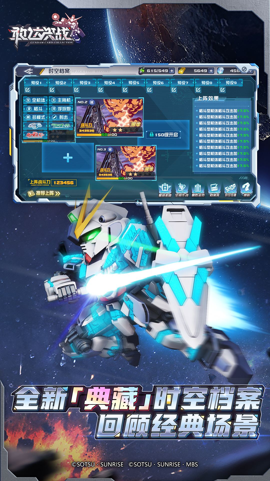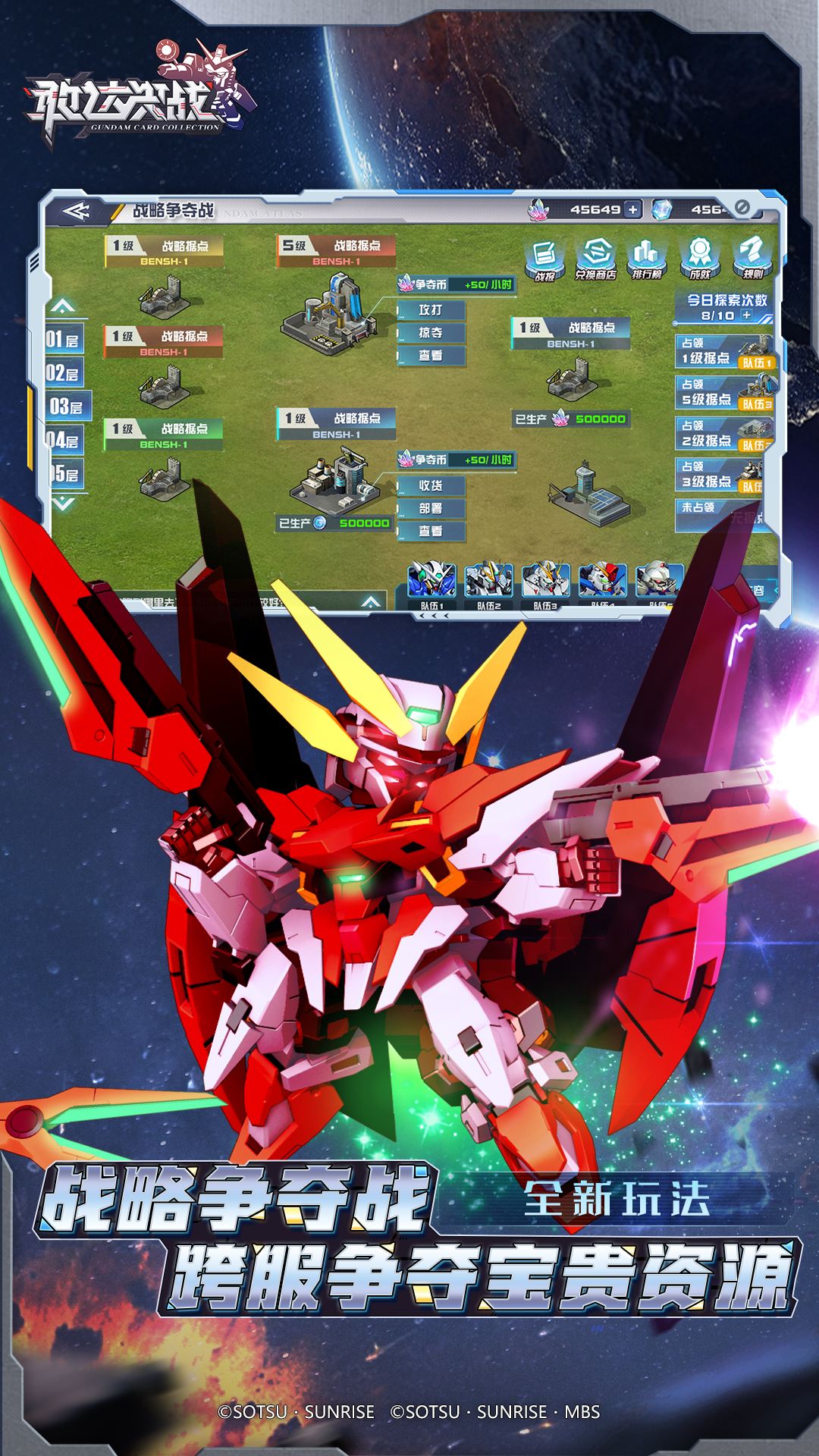 《敢达决战》全新2.0版本开启新纪元!殖民卫星重建完毕,主城焕新,王牌指挥官准备作战!美术升级,界面优化,体验全新游戏世界,机体重塑,必杀技能效果燃炸全场, 联合作战开启,宇宙对抗,全局预览运筹帷幄!《敢达决战》2.0等你来探索。