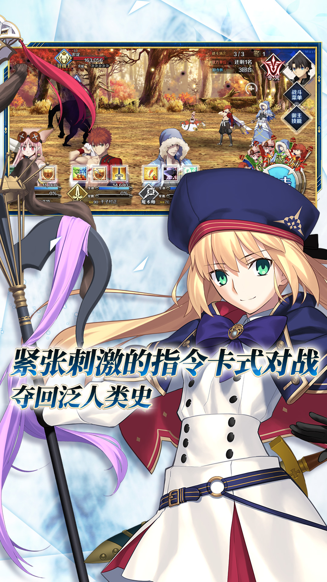 追番式故事线为您揭露多重背景设定,百万字剧情构筑宏大世界观。纯正日式rpg,指令卡牌战斗,更有神秘职阶解锁。川澄绫子、植田佳奈、坂本真绫、樱井孝宏、神谷浩史等40多位声优全程配音 ,武内崇等50余位知名画师联手奉献百余精美角色,带您亲自体验盛大的圣杯战争!