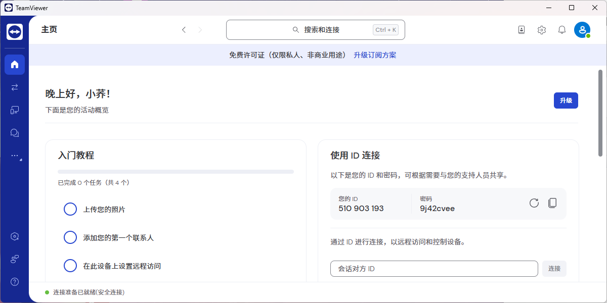 5、开始远程支持:连接您的联系人或设备,以提供或接收支持。