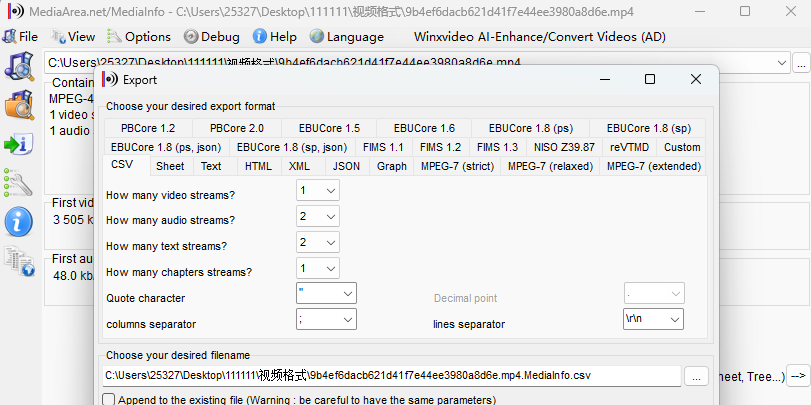 mediainfo是一款视频参数检测工具,可用来查看电影和音乐的编码信息或者id3等标签信息。mediainfo完美支持简体中文版,而且使用十分方便,软件内置多种信息视图查看方式,表格视图、文本视图、基本视图等通通支持。