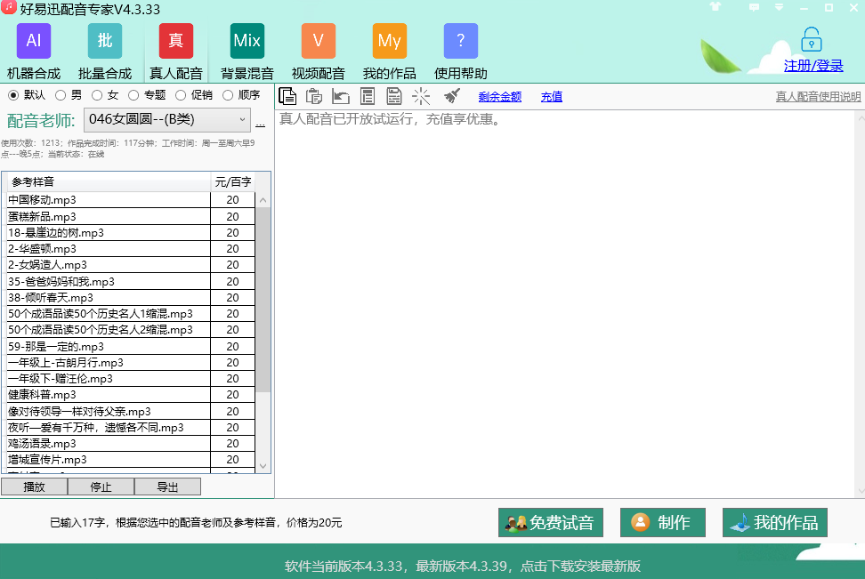 专业软件,简单易用,好易迅配音专家专注解决语音合成