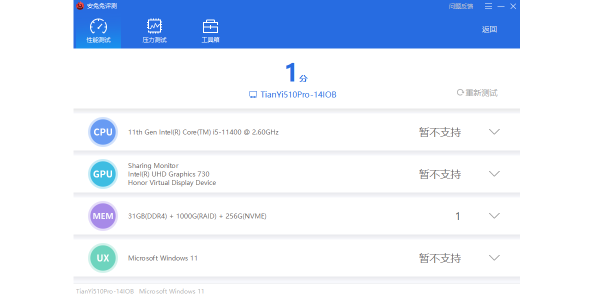2、全面的硬件性能评测: