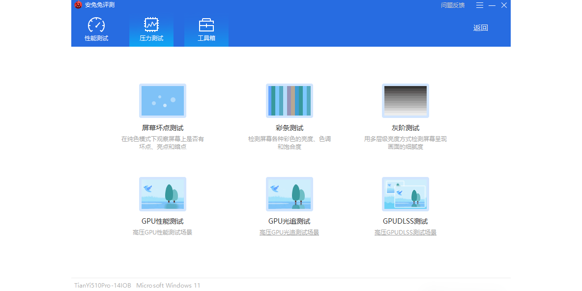 集硬件性能评测、html5测试、电池测试、视频测试、稳定性测试等五个测试项于一体全面测试设备的硬件、系统及电池等各项性能。