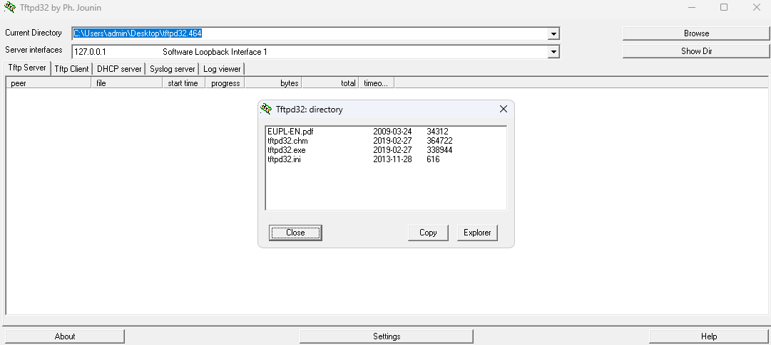 tftpd32这个软件是一个集dhcp, tftp, sntp和syslog多种服务为一体的袖珍网络服务器包,与此同时还提供tftp客户端应用,支持tsize, blocksize 与 timeout等。