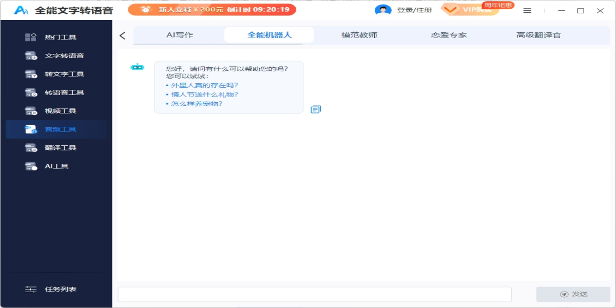 全能文字转语音是一款具备真人发声效果的智能配音软件,支持文字转语音、视频转语音、语音转文字等实用功能,适用于短视频配音、广告配音、宣传片配音等配音制作场景,轻松满足多种配音需求。全能文字转语音,轻松将文本转换成自然流畅的语音,支持多种主播类型,并提供调节音量、语速、语调等功能。适用于各种语音制作场景。