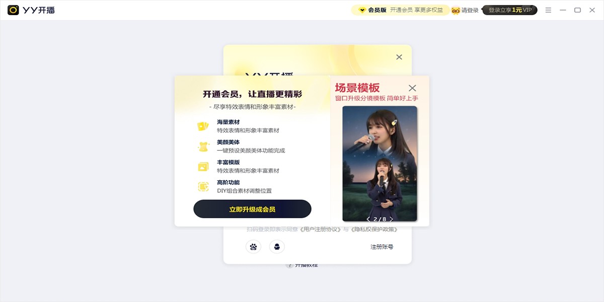 yy开播是专业直播伴侣,多模式直播支持,满足不同场景需求,打造沉浸式的直播氛围,提供画面调节、人像美化、音视频特效、开播模板等全方位辅助功能,超10年行业经验积累,海内外千万主播信赖的直播必备工具。