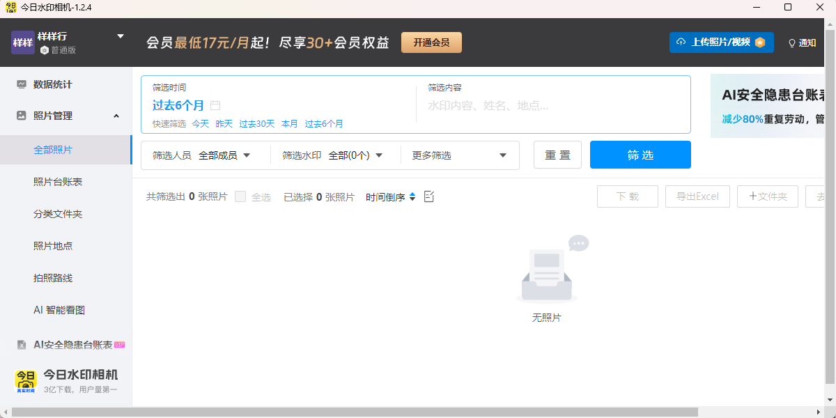 除了app端的“工作台”,还可以登录电脑后台,进行照片管理、考勤管理、拍照路线、水印管理和团队管理等。