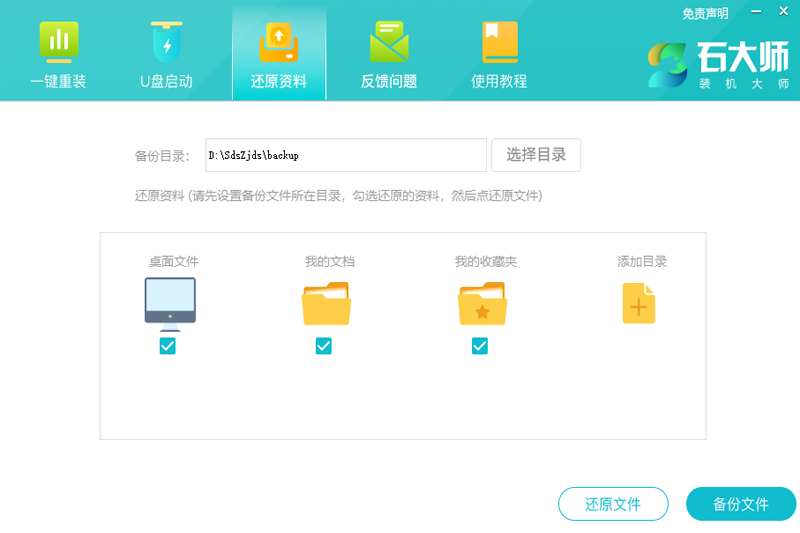 支持系统备份还原,并在重装过程中提供电脑联系人与文件资料的备份 操作,确保重要资料的完整、不丢失。