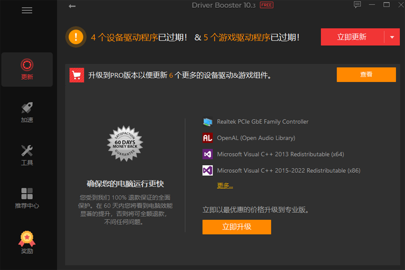 你可以通过点击“扫描”按钮扫描所有过时的驱动程序,然后点击“更新全部”按钮即可完成硬件驱动更新。与其他驱动程序更新工具相比,driver booster pro 可以提高你的计算机游戏性能。