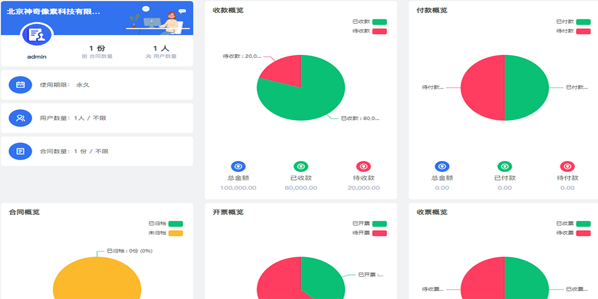 首页多种图标统计,收款付款统计、开票收票统计、合同概览、收款付款柱状图统计