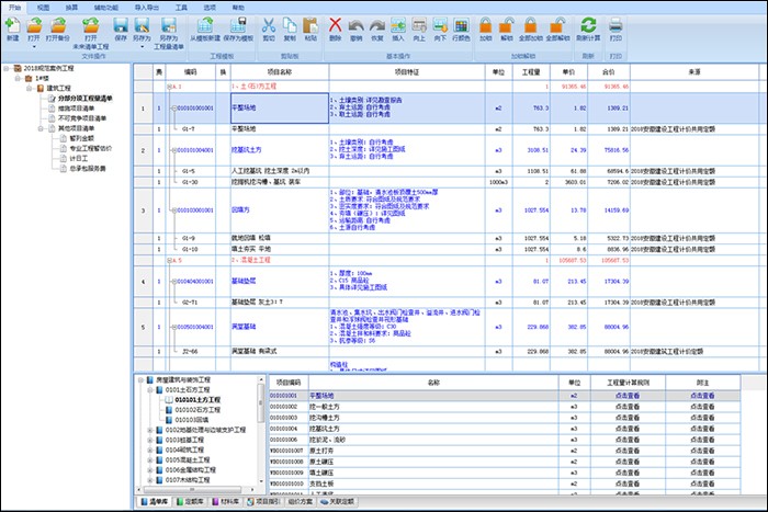 软件采用父子层次结构对数据进行管理,各数据查看方便快捷,工程目录树、标题/清单/定额、工料组成等可根据需要展开/折叠查看;