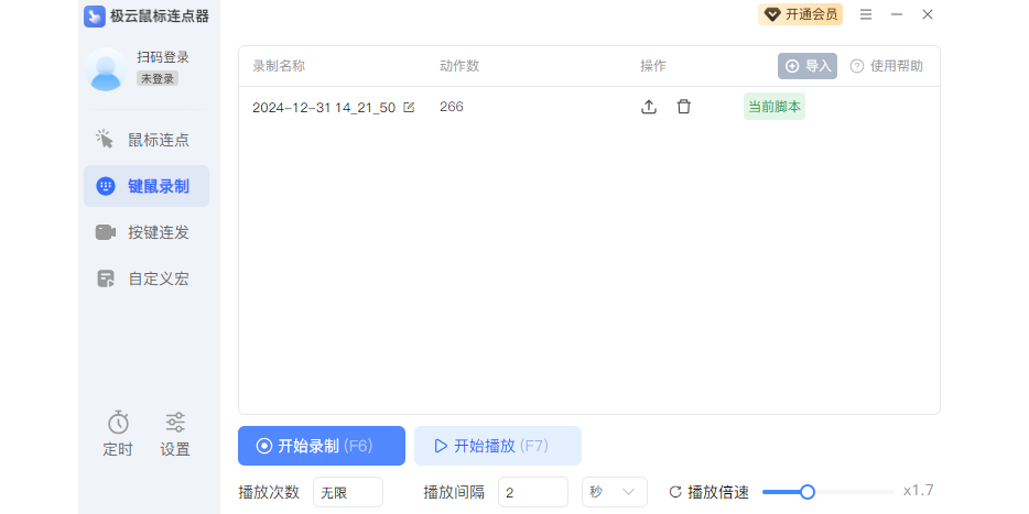 在执行键鼠高速点击过程中,可启动键鼠录制功能,录制键鼠的移动轨迹、点击操作等,保存为录制文件,便于下次执行同样的操作