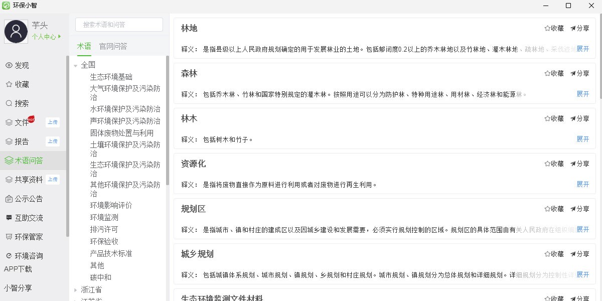 各类法规、报告、政策等信息都可以来环保小智进行搜索查找;