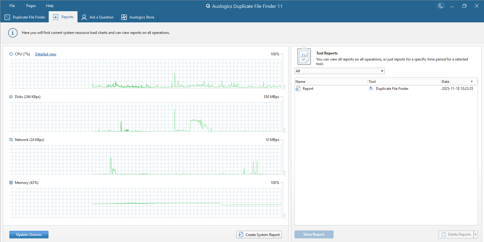 auslogics duplicate file finder是一款重复文件查找工具,软件通过比较文件内容判断是否为重复文件,即使有不同的文件名也不影响判断;软件基于二进制比较法则,支持图片、视频、音乐和文本的预览,也可以二进制模式预览;扫描完毕后,软件会自动选定创建时间较早的为待删除文件,而内置的自动标记法则也支持高级设置,包括设置扩展名、文件大小、文件日期、文件名等,当然也可以设置需要排除的文件夹,从而可以保护系统文件和系统文件夹。