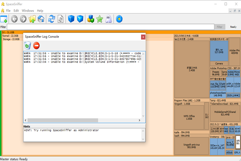 spacesniffer官方版是一款高效便捷的磁盘空间分析工具,spacesniffer官方版可以让您硬盘中文件和文件夹的分布情况的应用程序。spacesniffer最新版还可以很直观的以区块,数字和颜色来显示硬盘上文件夹,文件大小。软件还能用筛选器过滤出要找的文件。
