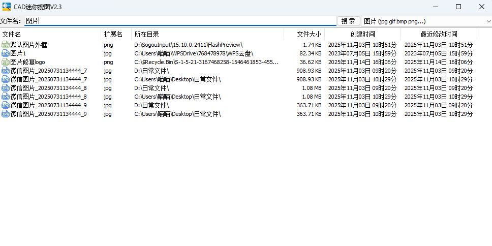 极速搜图纸小工具!一瞬间即可搜索到本机所有的dwg图纸,还能单独搜索文档、图片、音乐视频~