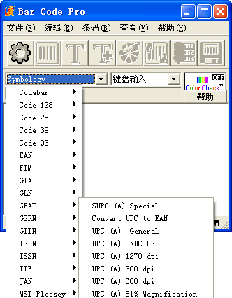 itf, jan, ean, upc, ucc/ean 128, issn, fim, postnet, pharmacode, and msi/plessey, code 128, code 25, code 39, code 39 gaylord, code 39 numeric modulo 10 formats, code 39 paps, ibsn/issn with ean, itf hl7, itf loinc, planet, new ucc/ean-128 ean-13及其他
