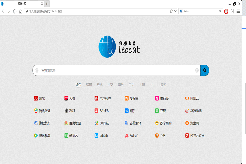 狸猫浏览器(leocat web browser)自v2.0开始,改为全新的web engine内核引擎,网页浏览速度全面提升的同时,兼容性也得到了极大改善,性能全面超越其他同类浏览器!狸猫浏览器具有自定义主页、多标签浏览、标签 自由拖拽等增强浏览舒适度的功能设置,能让您在浏览网页的过程中更感流畅。