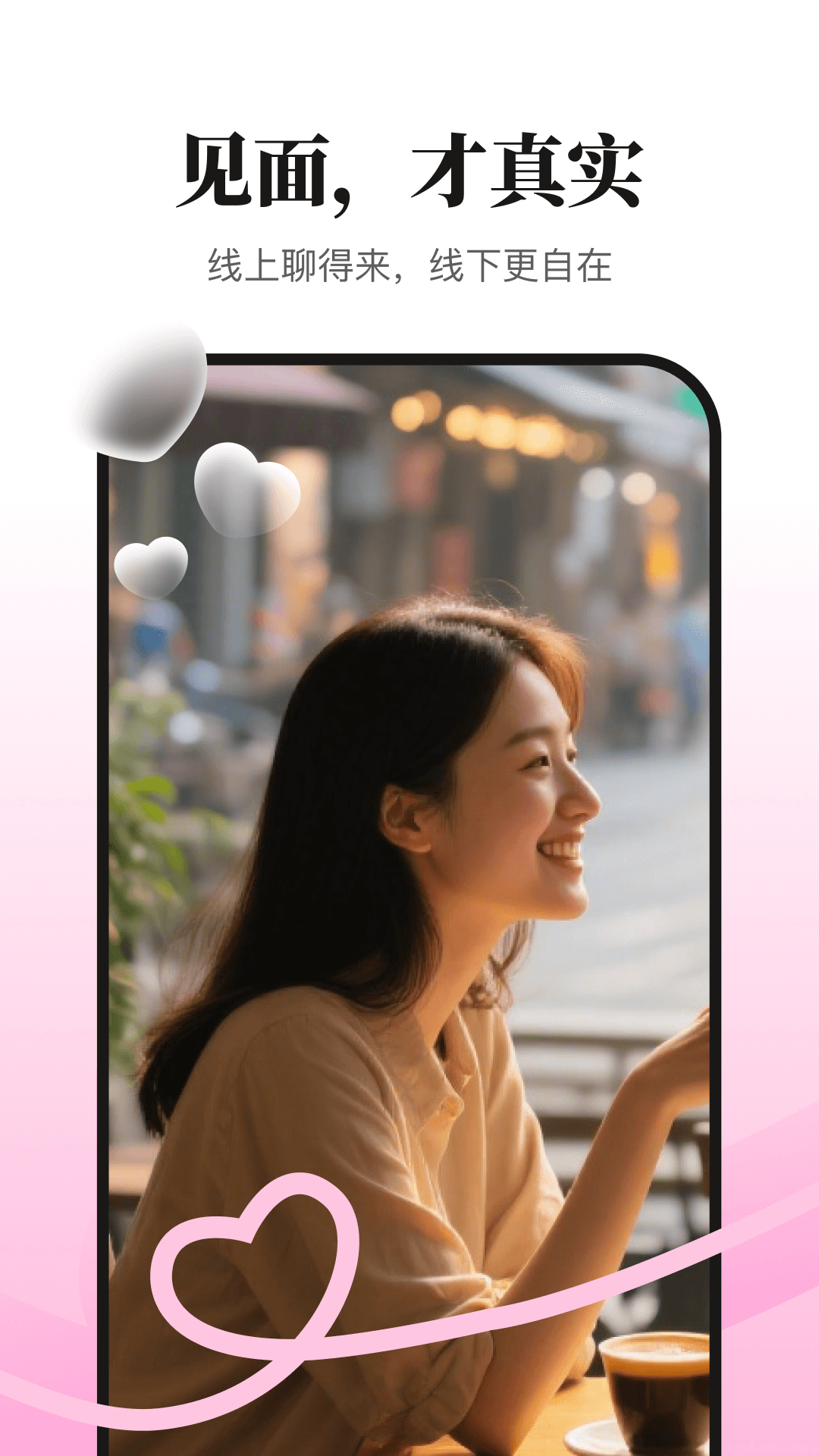 摆脱传统在线约会模式,看准自己,看准ta,真实、自信、舒适地走向见面与关系!