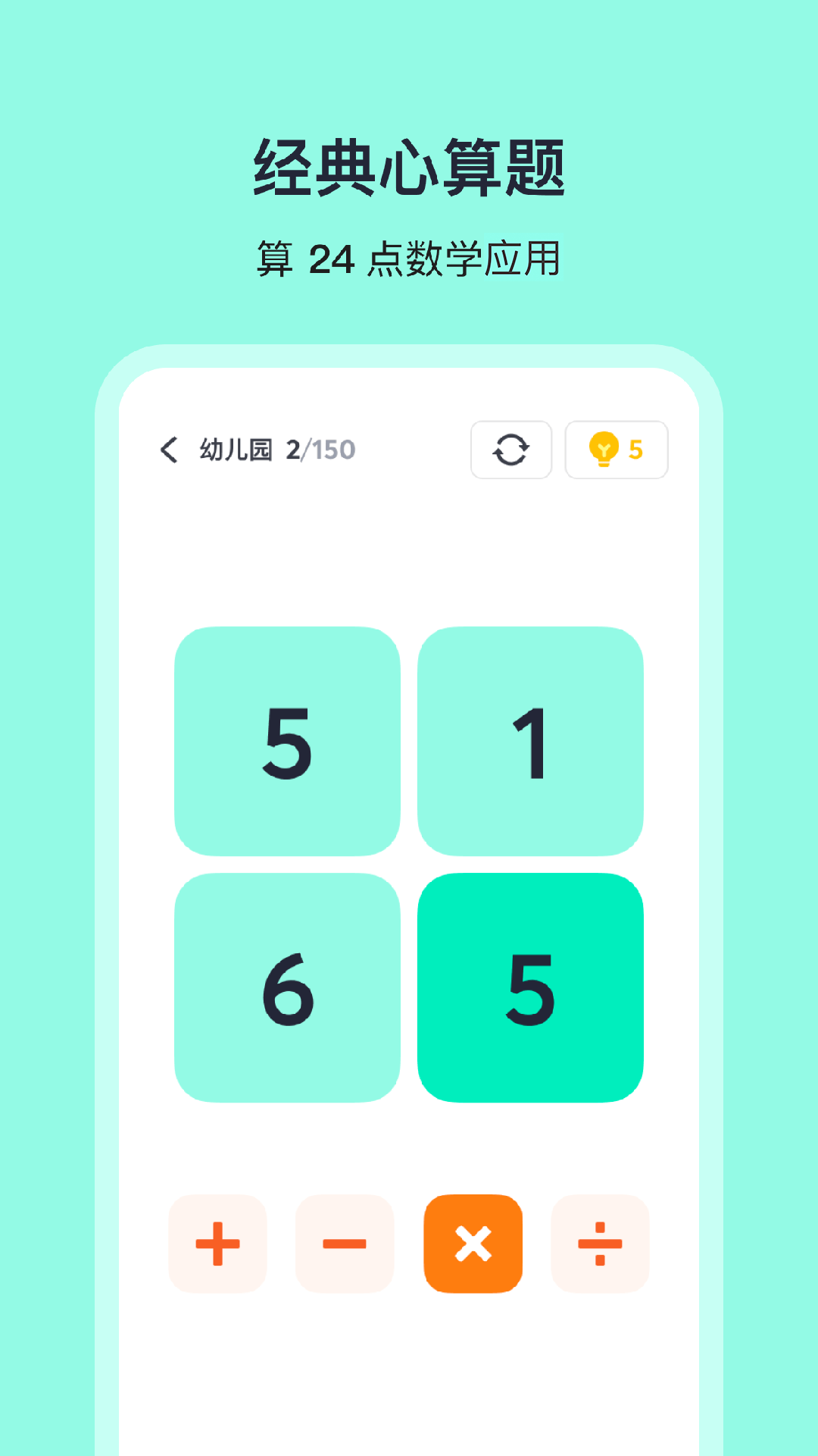 适合情侣、室友、同学、朋友、全家人一起,和亲友尽情pk速算24,争做24点之王吧!
