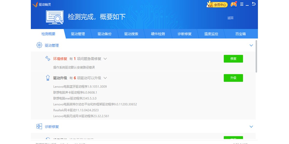 快速安装操作系统补丁没打齐?缺少各种.net、vc运行库致使程序无法运行?驱动精灵可让您的系统安全稳定,功能完备。