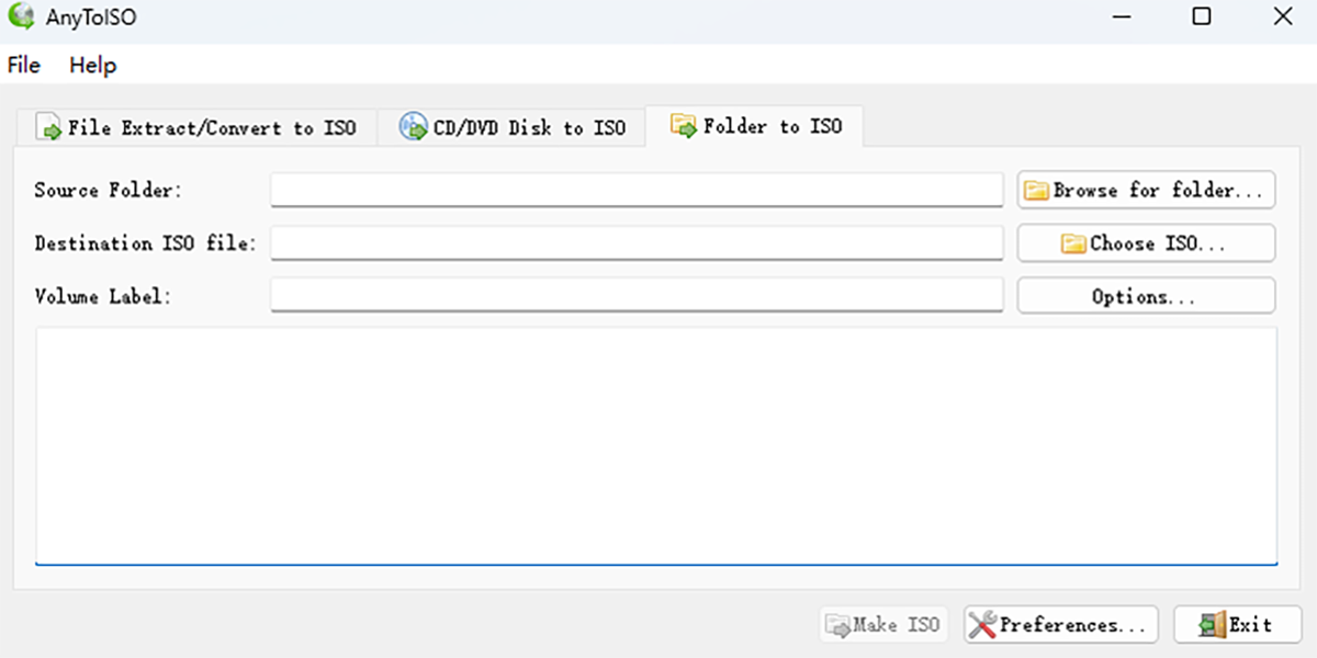 anytoiso能够从本地磁盘上的文件和文件夹创建iso映像。为了做到这一点,应该有一个文件夹包含所需的iso映像的所有文件/文件夹。然后选择“文件夹到iso”选项卡下的应用程序中的文件夹(在windows中,可以在资源管理器中右键单击文件夹)。建议选择所需的卷标。最终的iso映像与windows/macos/linux兼容,可以被任何程序(支持iso映像)读取。当然可以在cd/dvd/蓝光光学介质上刻录。