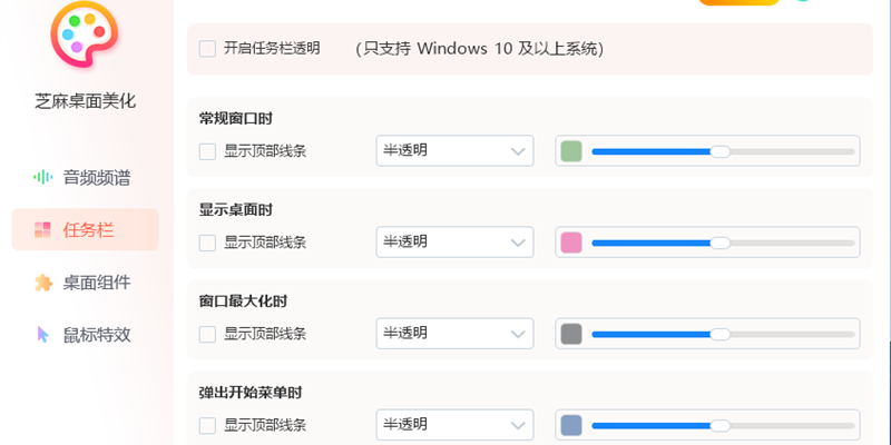 任务栏美化 让任务栏变成透明、自定义背景颜色、增加模糊效果等