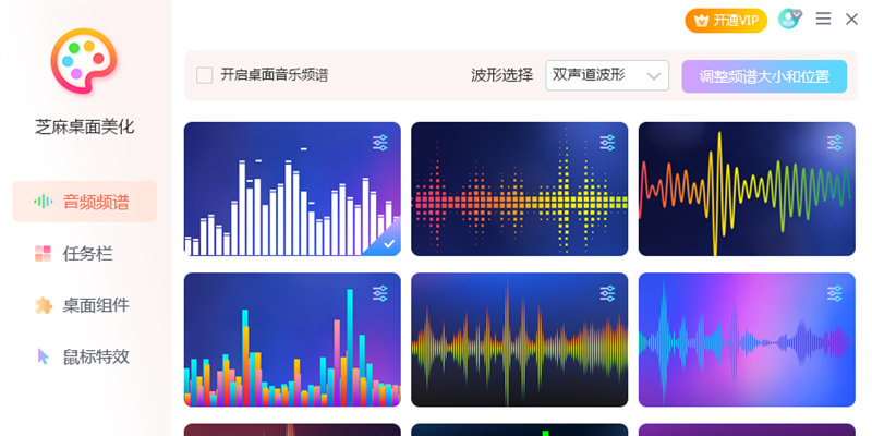 芝麻桌面美化软件是一款功能强大的桌面美化工具,主要功能有电脑主题美化、任务栏透明美化、鼠标光标美化、声音波形图、音频频谱等功能。结合动态壁纸、高清壁纸,再加上在桌面添加日期、时钟、农历、天气等功能,打造一个非常有特色的桌面。