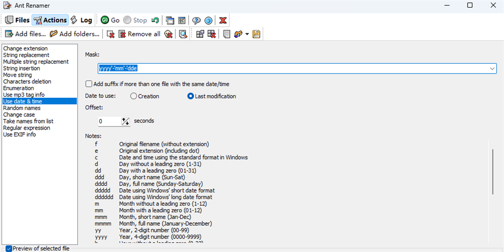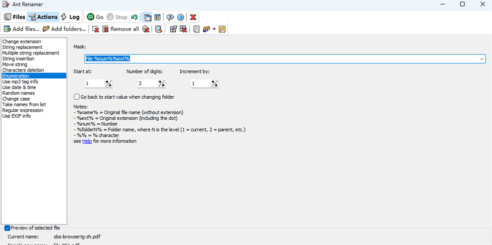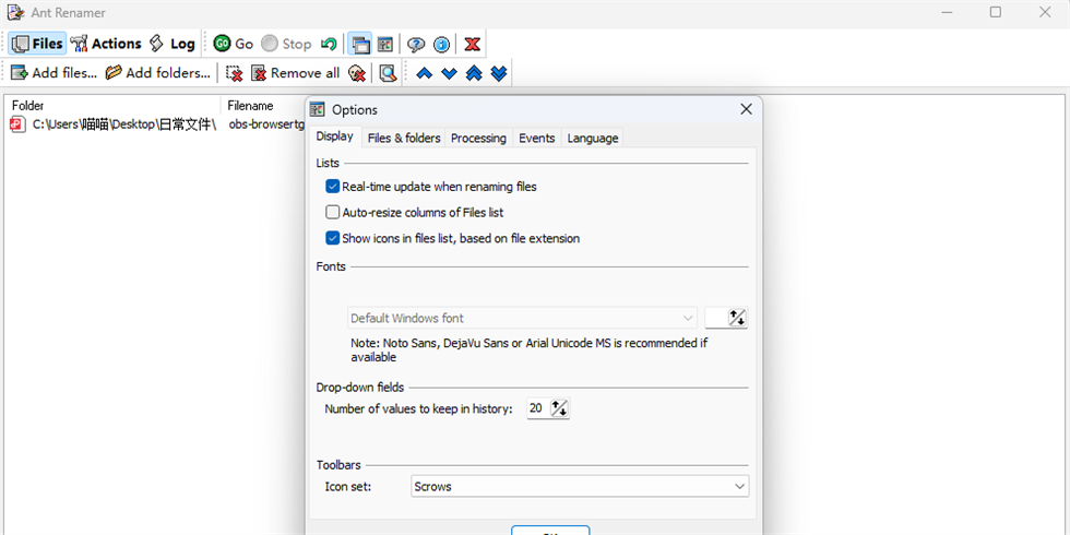ant renamer是一款用于批量重命名文件和文件夹的开源软件,可以通过软件快速设置新的文件名字,启动软件就可以加载多个目录到软件处理,可以自动在软件界面查看全部目录保存的文件,从而适配新的规则对列表的文件执行重命名处理,支持替换字符功能,可以在软件查找原始文件名字中的字符,可以输入新的字符执行替换,也支持删除字符串,在原始名字中连续删除多个字符,方便以后插入新的字符作为新名字,也支持手动在软件输入多行名字,一个名字替换一个旧文件名字。