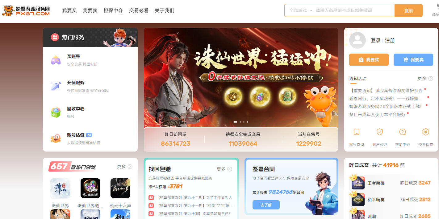 海量账号每日上新,覆盖市面上热门手游与端游,从经典情怀之作到最新潮流爆款一应俱全。每一个上架的账号都经过精心筛选与严格审核,只为给用户呈现最优质的账号选择!