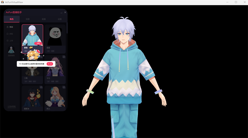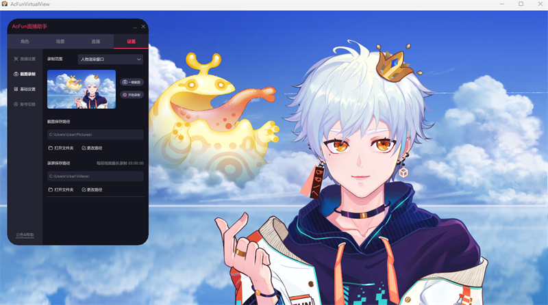 acfun面捕助手是一款多功能的虚拟主播面捕工具,支持live2d模型和vrm模型一键导入,还拥有一项原创黑科技:让你的原画直接动起来!
