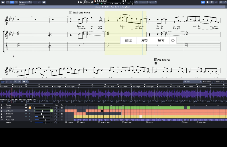 guitar pro中文版是一款吉他谱曲软件,也是一款优秀的midi音序器和midi制作辅助工具,guitar pro中文版可以配置 8 个 track,软件界面十分简洁清晰,程序有输出、存档与列印的功能,还附有和弦的指导辞典,让繁琐复杂的工作变得简单有趣!