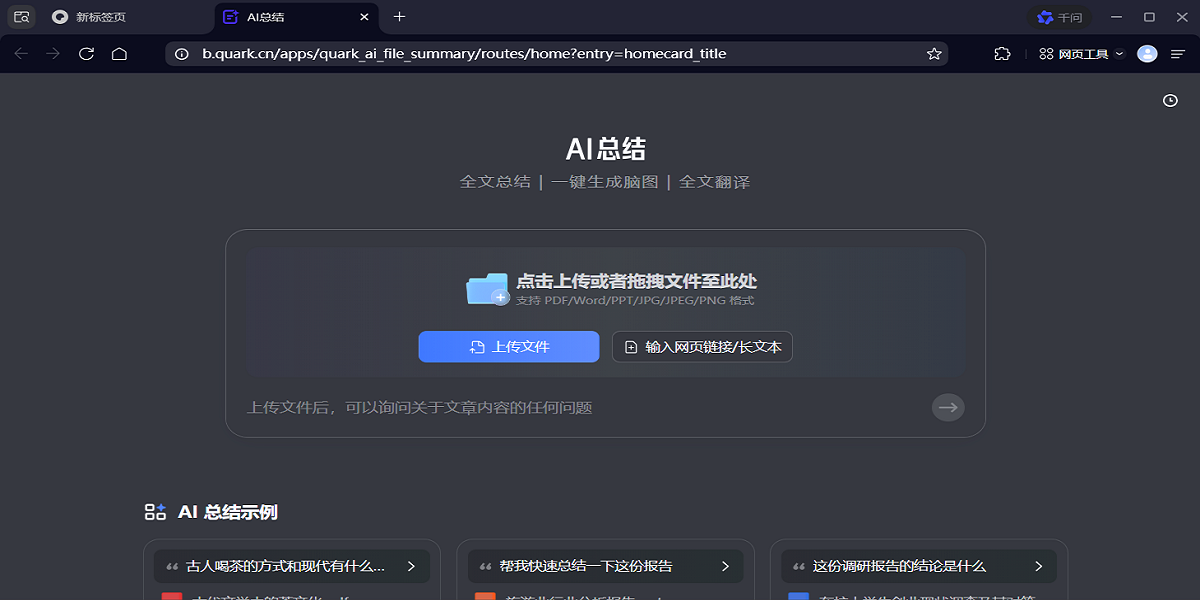 ●一键拖拽上传;全文总结|一键生成脑图|全文翻译