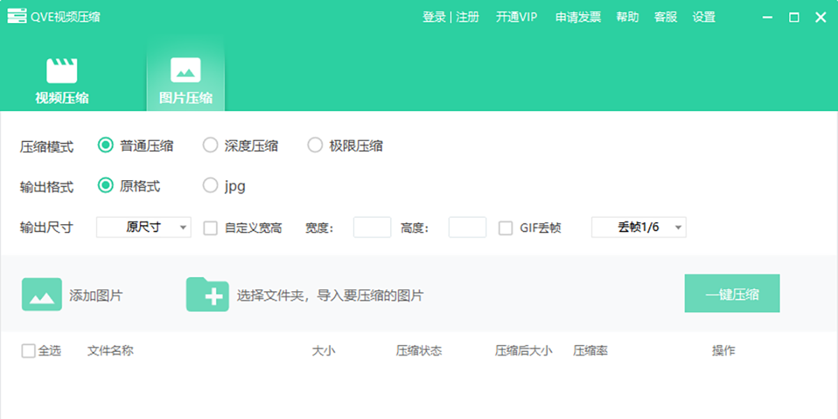 选择自己要压缩的图片文件,点击图片压缩进入到压缩页面,可一键批量选多张图片,压缩模式可选(普通压缩、深度压缩、极限压缩)。